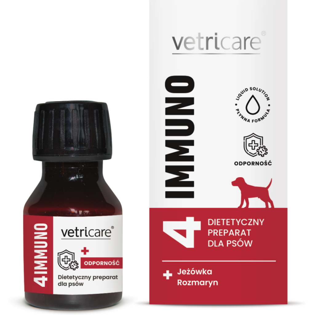 Płynna mieszanka paszowa uzupełniająca dla psów, wspierająca odporność i regenerację organizmu.